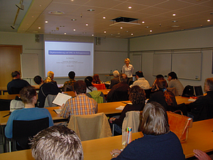 Frau Diethelm gab in ihrem Workshop »Objektorientierung und UML im Anfangsunterricht« eine Einführung, wie man Objektorientierung in der Schule umsetzen kann, ohne dass die Schüler spezielle Programmierkenntnisse haben.